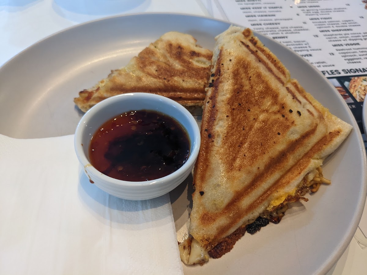 As the day wears on, be sure to try the Miss Fishy, a mouthwatering option packed with smoked salmon, capers, and cream cheese – a flavor combination that is both refreshing and indulgent. Don’t forget to indulge your sweet tooth; the Miss Cookies And Cream jaffle marries Nutella with cookies, strawberries, and a scoop of ice cream, creating an irresistible treat that’s perfect for brunch or dessert.